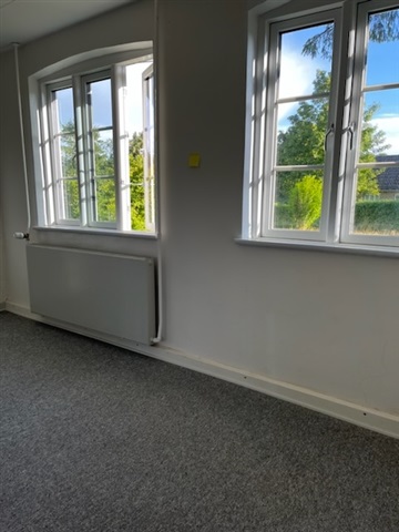 Well-appointed house of 110 m2, secluded and high located on a side road in Øksendrup, 15 min. from Nyborg and the Great Belt Bridge. Contents: Entrance, hallway with plenty of space for cupboards, large living room with parquet floor, bedroom, 2 children's rooms, kitchen with newer appliances, bathroom, utility room, laundry/boiler room, storage room. Newer windows. Appears freshly painted. District heating from straw wood. Fiber internet. Garage and outbuilding, garden with large SW-facing terrace and view over fields. 3 min. walk to public transport, cycle path to school. DKK 5400 + consumption. 3 months deposit.If you want to read the description in its original language that is also possible. Read original description
