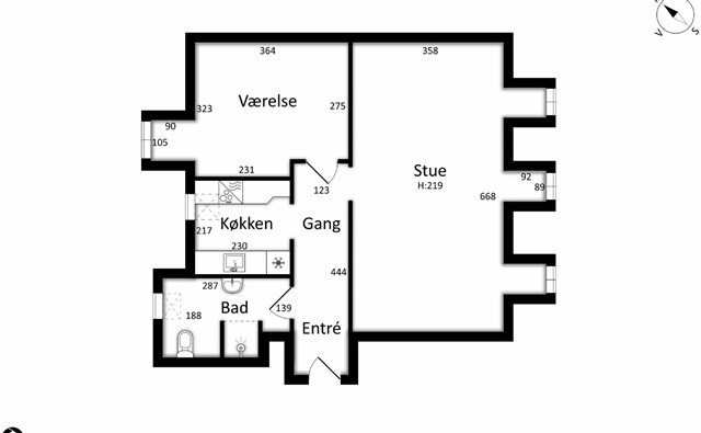 Located in the very center of Næstved, this recently renovated apartment offers convenient access to everything the city has to offer. Residents can enjoy a pleasant communal courtyard area while being within walking distance of all amenities.The building itself is a distinguished, older construction situated in the middle of the pedestrian street. It stands out with its striking architectural design and houses both commercial spaces and residential units.