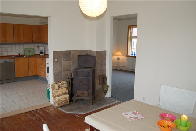 Charming villa with sunny and secluded garden for rent.The villa is furnished with Entrance hall, two living rooms en suite, lovely bright kitchen/dining room facing directly south, i.e. with sun all day long. From the kitchen there is a large glass door with access to a wooden terrace. Room/office and utility room/boiler room and nice tiled bathroom with shower and tub.