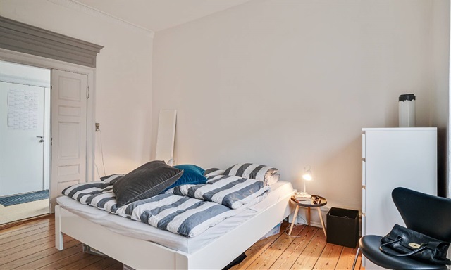 This distinguished apartment is characterized by its tall paneling, ornate ceiling moldings, and elegant double doors, all of which contribute to an atmosphere of refined grandeur accentuated by the high ceilings. From inside, there is a charming view of Frederiksborg Castle, adding a picturesque element to daily living. The accommodation includes a well-appointed kitchen that offers ample dining space and a door leading to the rear staircase. The bathroom features a bright and light color scheme, enhancing the clean and pleasant aesthetic. The three adjoining living rooms provide versatile options: one can be comfortably adapted as an additional bedroom, or alternatively, serve as a home office or a separate dining room, depending on personal preferences.The apartment also encompasses a spacious master bedroom with numerous possibilities for furnishing and layout. Parking can be arranged as an optional extra. For those interested, viewings are available by appointment.