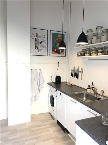 Property:City property located centrally in the pedestrian zone in Svendborg. There is Bog & Ide on the ground floor. The property is located directly opposite the church. Description:Large and beautiful 4-room first-floor apartment of 126 sqm which contains: Entrance hall, large lovely living room, dining room with access to terrace, 2 bedrooms, kitchen and bathroom. Heating:District heating. Accounting through the landlord according to radiator meters.Water consumption:Electricity consumption:Accounting through the landlord according to individual water meters.Own meter with settlement directly to the utility company. White goods:Pets:Stove, extractor hood and fridge/freezer.Not allowed. Rent: a/c heating:a/c water:kr. 7,695.00kr. 800.00kr. 500.00Total rent:Annual rent increase:kr. 8,995.00Follows the development in the net price index.Deposit:3 months' rent.Prepaid rent:Takeover:2 months' rent.As soon as possible. Termination:3 months from the tenant.Viewing:By appointment.If you want to read the description in its original language that is also possible. Read original description