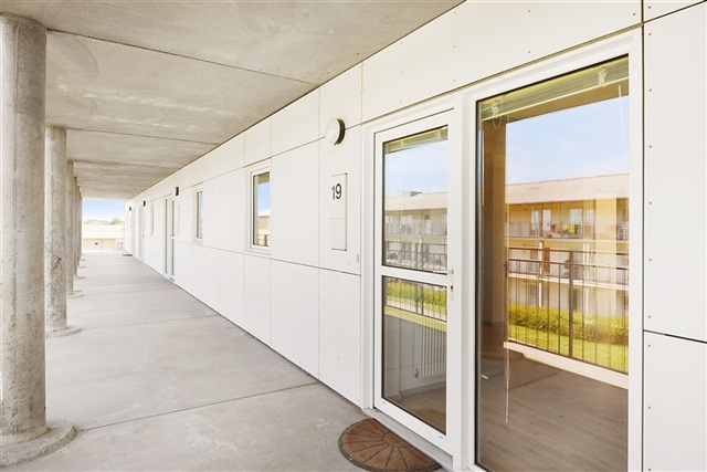 Fælles Fårehave is a small residential community nestled in the beautiful natural surroundings of Haderslev. The development offers three-room apartments available at various price points to suit different needs. Interiors are bright and welcoming, featuring beech parquet floors. The bathrooms are tiled in light hues and include a shower, toilet, as well as designated space for both a washer and dryer. Kitchens are spacious and well-lit, equipped with ample cabinet and countertop areas, and fitted with a refrigerator/freezer, stove, and extractor hood. The bedrooms offer built-in closets and plenty of natural light, while the living rooms are elongated and generous in size, allowing for a cozy dining nook as well as a sitting area.From the living room, residents enjoy bright, large windows and access to either a balcony or terrace, depending on the unit type. Some apartments also include a corridor balcony. These outdoor spaces are thoughtfully integrated into the building design, providing an ideal spot to relax and enjoy the outdoors. Personal touches such as green plants, café tables with chairs, and views of the cityscape, surrounding fields, or the distant Haderslev Fjord can make these areas inviting. For those living in the row houses, there is a private enclosed garden that can be customized to one’s preferences. Regarding utilities for the three-story buildings, water consumption is covered by the rent, with heating billed monthly in advance by the landlord, while electricity costs are settled directly with the utility provider. For the two-story buildings and row houses, water and electricity are paid directly to the supplier, with heating charged monthly in advance by the landlord.