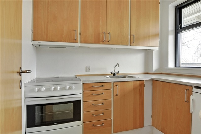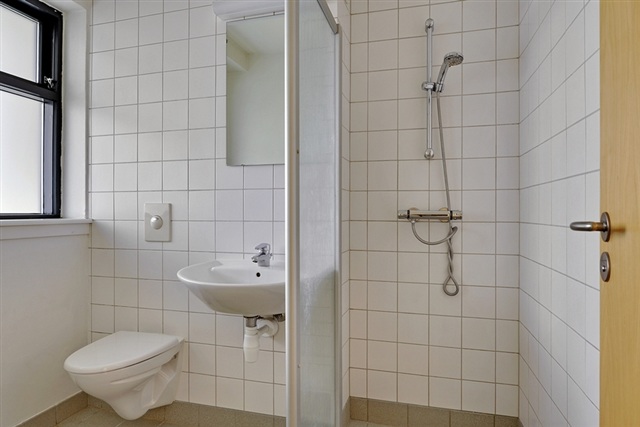 Erik Grøn Kollegiet offers a total of 90 modern student apartments, either one- or two-room units, designed to be bright and welcoming. The kitchens are either situated independently or integrated within the entrance area, which features spacious built-in wardrobes. Each kitchen is equipped with a refrigerator, extractor hood, stove or separate oven with hotplates. The combined living and sleeping areas benefit from natural light and have beech parquet flooring. Bathrooms come with neat gray tiled floors, walls finished in white glass fabric or tiles, and include both a shower and toilet. Outside your own apartment, there is space to create a cozy retreat with a café table, chairs, and flowerpots. Water and heating costs are billed monthly on account by the landlord, while electricity is paid directly to the provider.Located in the northwest section of Haderslev, Erik Grøn Kollegiet sits within walking distance of the city center. The building underwent renovation in 2005, during which insulation was enhanced and new windows installed. Glass walkways between buildings allow for ample daylight to flood the area. The residence includes pleasant green communal spaces furnished with table and bench sets, providing quiet spots to study or relax with friends. Additional amenities include convenient parking options nearby, a shared laundry room, and the possibility to rent a basement storage unit.