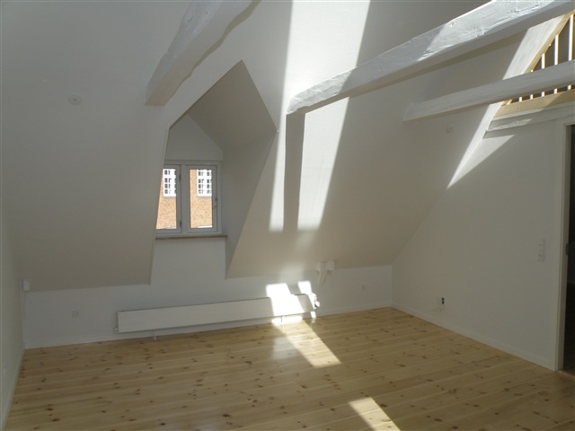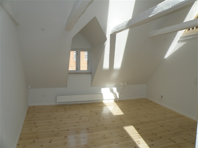 This recently renovated and charming two-room attic apartment features a modern Kvik kitchen equipped with all necessary appliances. The kitchen seamlessly flows into the living area, and a ladder provides access to a loft space above.The layout includes one bedroom and a bathroom. Additionally, the unit is fitted with its own washer and dryer.