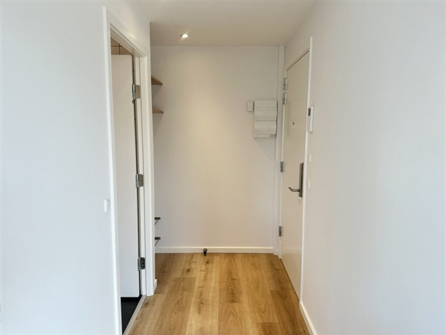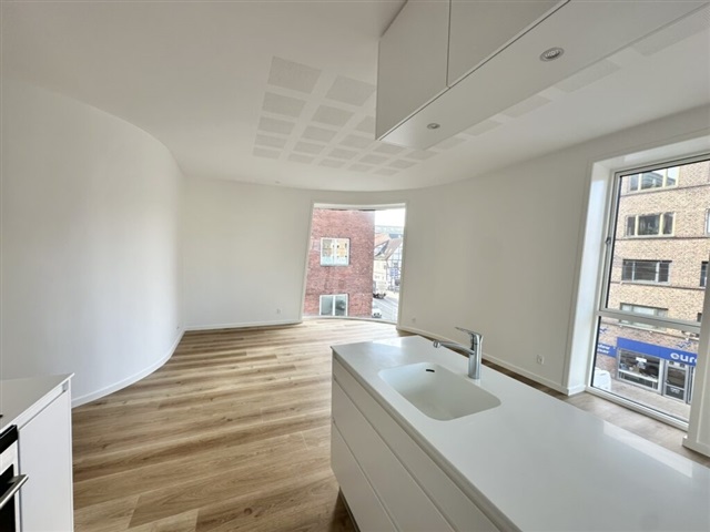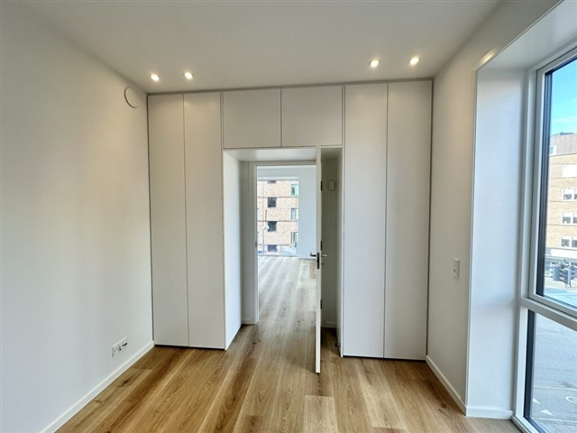 This attractive apartment is situated in a notable development completed in 2014.Inside, the layout features an entry hall that leads to a well-appointed bathroom. The kitchen and living room are combined into an open-plan space filled with natural light, offering a beautiful view over Vesterbro. The bedroom is spacious and includes a generous wall of closets. Quality materials have been carefully chosen throughout the apartment, including elegant tile flooring in the bathroom, stunning oak parquet in the other rooms, and premium Corian countertops. Underfloor heating is installed throughout the entire residence.