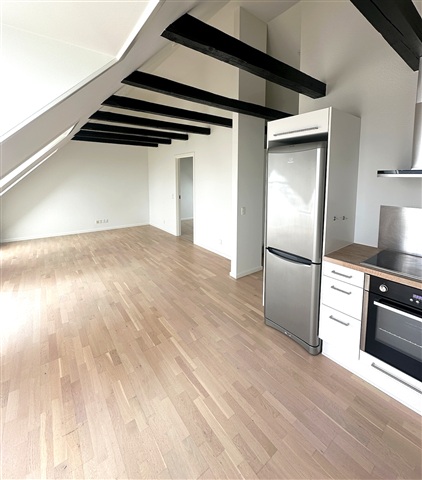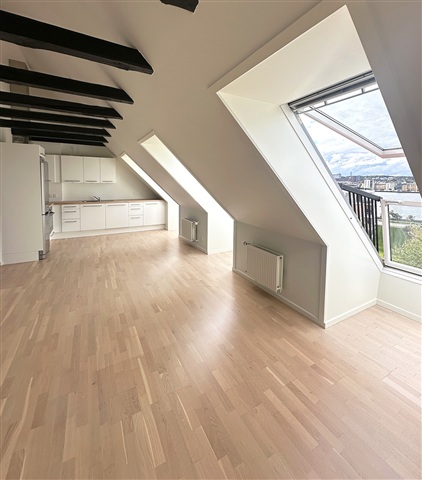 Situated on the top floor of a four-story building, this apartment encompasses 60 square meters that have been fully renovated. Upon entering, you find yourself in a spacious hallway equipped with ample closet space ideal for storing coats and shoes. From here, access leads to a well-appointed bathroom featuring a combined washer and dryer unit. The expansive living room serves as the focal point of the home, allowing natural light to flood the space through large soundproof windows that provide tranquility despite the central urban location. From these windows, one can enjoy stunning views over Limfjorden and the city of Aalborg.Located in the heart of Nørresundby, the apartment benefits from a prime setting just a short bike ride across the Limfjordsbroen bridge to Aalborg. Everyday essentials, shopping options, and urban amenities are all conveniently close by, offering a balance between vibrant city life and a more peaceful environment. This residence is ideally suited for anyone seeking a central yet comfortable living space highlighted by exceptional waterfront views.