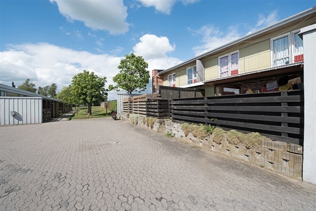 The residential complex comprises one- and two-story townhouses built between 1974 and 1976. The buildings have been recently renovated, featuring insulated gables clad with red and yellow bricks. Thanks to the large window sections in all rooms, the interiors enjoy bright and open atmospheres. Located in a child-friendly and traffic-safe environment, the community offers shared laundry facilities and a communal hall available for private events. Twelve allotment gardens are available to residents for lease adjacent to the housing area. Outside, well-kept green spaces include playgrounds, picnic tables, a pétanque court, and a sports field where residents of all ages can indulge in games. Pet ownership of up to two dogs or cats is permitted, with the stipulation that animals must be leashed when outside private premises. Satellite dishes may be installed upon application, and television services are provided by Boxer or TDC.