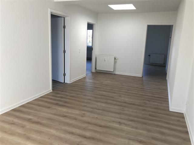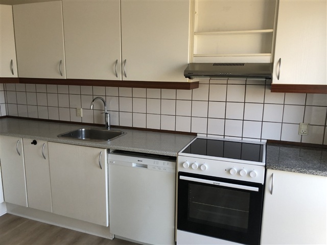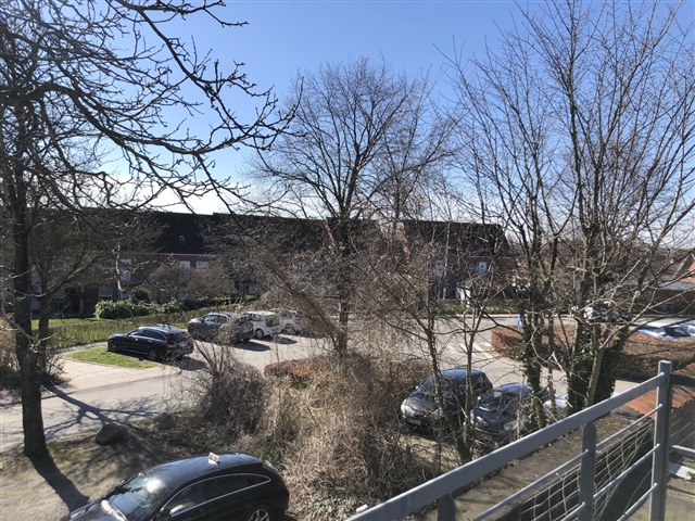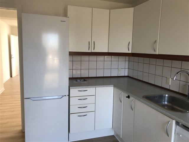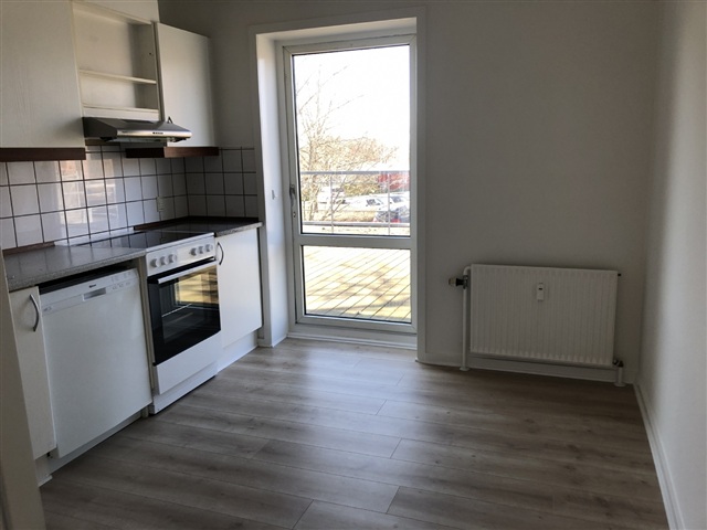 The rental property is situated in a highly central location within Ringe. This apartment can be found in a relatively new, separate building positioned behind the main property facing Jernbanegade.This spacious and well-maintained three-room apartment encompasses 95 square meters. The layout includes an entrance hall, living room, two bedrooms, a kitchen that offers access to a large private balcony, and a bathroom.