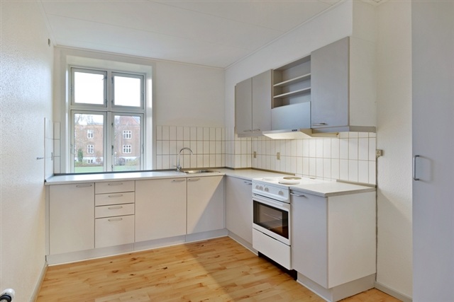 Located at the heart of Nykøbing Mors, this remarkable protected building from 1892, known as "Palæet," offers exceptional views overlooking the town square and harbor. Although it underwent renovation in 1991, the property retains its historical charm and many beautiful original details both inside and out. The spacious kitchen features elegant grey shades and comes equipped with a stove, extractor fan, and room for a dishwasher. It opens directly into the living area, which boasts stunning hardwood floors and abundant natural light streaming through gracefully curved window panels. The well-kept bathroom is fitted with white glass fiber walls, a linoleum or tiled floor, shower, toilet, and space for a washing machine. Both bedrooms include built-in wardrobes. A particular highlight is the "director's apartment," distinguished by ornate stucco ceilings, a wood-burning stove, and tall doors adorned with intricate carvings. Residents have access to dedicated parking and a bicycle shed located in the courtyard. Water consumption is covered by the rent, while heating and electricity are billed separately by the utility providers.The apartments available provide vibrant city living in a central location within Nykøbing Mors. Residents benefit from proximity to well-functioning schools, daycare centers, shops, and bus stops. The area is enriched with numerous leisure and cultural opportunities, such as the renowned Jesperhus attraction, which includes a flower park with a jungle zoo, a holiday center, swimming pool, and bowling alley. Additional information about the municipality can be found on its official website.