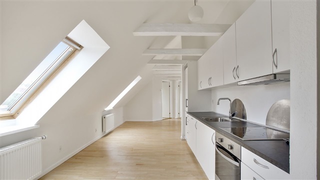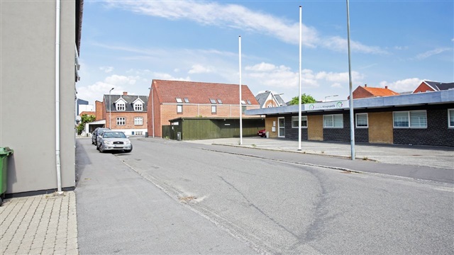 The apartment has recently undergone renovation and offers a spacious, well-planned layout within a modernized building. It is situated in a quiet neighborhood while maintaining a highly central position in Næstved. There are convenient parking options available nearby.The building itself is contemporary and located within a fully developed, family-friendly residential area primarily consisting of detached houses. It presents a stylish appearance and accommodates both commercial and residential units. Heating is supplied via district heating.