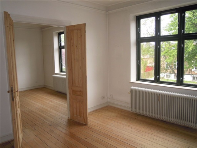 This attractively designed three-room apartment is situated in the heart of Slagelse. The layout includes an entrance hall serving as a distribution area, a modern and well-maintained kitchen, as well as a recently updated bathroom featuring a shower. Two spacious living rooms are connected en suite with double hinged doors between them. The generously sized bedroom faces the courtyard and provides access to a balcony. The apartment boasts beautifully sanded wooden floors and decorative ceiling moldings.The rental unit is newly refurbished and available for lease. Utility costs cover heating and water consumption. There is an option to rent a private parking space nearby.