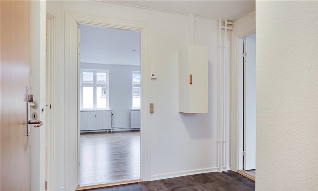 This spacious four-room apartment is conveniently positioned near the pedestrian street in Vordingborg. It features three well-sized bedrooms, a cozy living room, along with a tidy kitchen and bathroom.The property itself is a well-maintained commercial and residential building situated centrally in the heart of Vordingborg. The structure accommodates both retail spaces and living quarters and utilizes district heating for warmth.