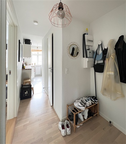The apartment is newly constructed, featuring a bright and welcoming atmosphere throughout. Upon entering, there is a well-designed hallway with ample space for outerwear. The kitchen is a modern HTH model, complementing the clean and luminous living room. The bedroom offers a practical size and includes built-in wardrobes. The bathroom, also recently installed, is fitted with elegant white HTH fixtures.Situated close to well-known landmarks such as Nordkraft, Musikkens Hus, and the Friis Shoppingcenter, this 55-square-meter unit stands out with its fresh renovations. High-quality HTH materials are present in the kitchen, bathroom, and bedroom, reflecting a refined and contemporary finish. Ideal for either a single occupant or a couple, this residence is ready for immediate move-in and offers a central location.