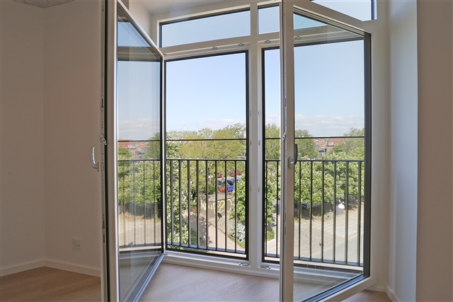 Situated on the third floor, this generously sized and well-arranged two-room apartment offers views facing both north and east. Upon entering, you encounter a hallway equipped with built-in wardrobes, leading to a bathroom featuring light tiles and underfloor heating. The bathroom is also fitted with a shower, a wash cabinet, and a laundry column that includes a state-of-the-art, energy-efficient washing machine and dryer.The property boasts a spacious combined dining and living area that seamlessly connects to the kitchen. The kitchen is outfitted with white cabinet fronts and includes a Quooker tap, alongside a full set of integrated appliances such as a dishwasher, a fridge-freezer, an induction cooktop, and a self-cleaning pyrolytic oven, all selected from the latest energy-saving series. From the living space, access is provided to an approximately 4 square meter east-facing balcony, featuring sliding doors, as well as a French balcony with double doors.
