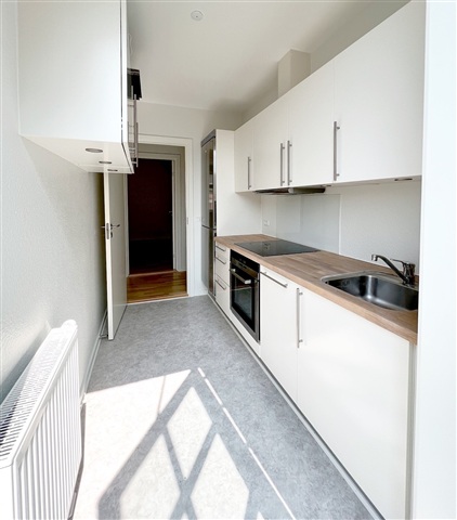 This recently renovated two-room apartment spans 61 square meters and features a well-designed layout. Upon entry, a hallway leads to a distribution corridor that connects all the rooms within the apartment. The bathroom is equipped with brand-new fixtures, including a spacious shower enclosure and ample cupboard storage. The kitchen is bright and modern, offering plenty of cabinet space and a dishwasher, along with access to a pleasant south-facing balcony that enjoys sunlight for most of the day. The bedroom contains several tall cabinets, while the living room provides enough room for both a sofa setup and a dining area.Situated in a central location, this rental property enables easy handling of daily errands in a short amount of time. Positioned close to Vangs Plads in the eastern section of the city center, the apartment is effectively neighboring Østre Anlæg, an area known for its natural scenery and inviting green spaces.