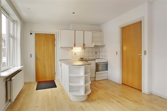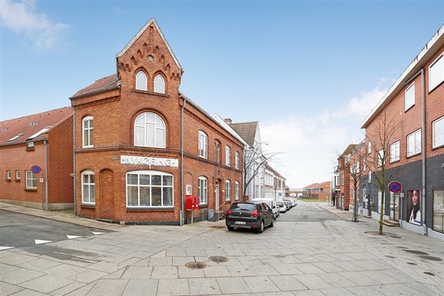 The property is situated in the center of Nykøbing Mors, offering views of the town square and harbor from an architecturally protected building dating back to 1892, known locally as “Palæet.” This historic structure underwent renovation in 1991, preserving much of its original charm and elegant features both inside and out. The spacious kitchen, designed in sophisticated shades of gray, includes a stove, extractor hood, and room for a dishwasher. It connects openly with the living room, which boasts beautiful wooden floors and abundant natural light streaming through its distinctive curved windows. The well-appointed bathroom features white glass fabric walls, either linoleum or tile flooring, a shower, toilet, and space allocated for a washing machine. Each of the two bedrooms contains built-in wardrobes. The unit known as the “director’s apartment” stands out with its ornate stucco ceilings, wood-burning stove, and tall doors adorned with intricate carvings. Residents have access to private parking and a bike shed in the courtyard at Raadhustorvet. Water usage costs are covered by the rent, while heating and electricity are billed separately by the utility providers.This housing department offers a selection of appealing city apartments right in the heart of Nykøbing Mors. The location provides easy access to well-established schools, daycare facilities, retail shops, and public transport stops. Nykøbing Mors itself is known for a broad variety of recreational and cultural opportunities, including the famous Jesperhus, which features not only a botanical garden with a jungle zoo but also a holiday center, swimming pool, and bowling alley. Further information about Nykøbing Mors can be found on the municipal website.