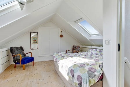 A bright and spacious room ideal as a master bedroom, with skylights providing excellent natural light.