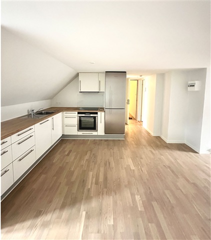 Upon entering, there is a designated space for hanging seasonal outerwear and storing shoes. Adjoining this area is a spacious kitchen-living room combination featuring a contemporary, open corner kitchen that sets the stage for many pleasant moments. This room comfortably accommodates both a dining table and a seating area, as well as shelves or other furnishings as desired. The bedroom offers generous dimensions, providing enough room for tall wardrobes and a double bed, along with a small office nook if preferred. The bathroom is inviting and spacious, equipped with a large shower enclosure. All fixtures and fittings throughout the apartment, from the kitchen to the cabinets and bathroom, are sourced from HTH. The entire unit benefits from newly installed soundproof windows, ensuring tranquility free of street noise while allowing plenty of natural light to flood in.Situated in an exceptionally central location, the apartment places countless shopping options, grocery stores, and public transport right at the doorstep. Additionally, parks and the harbor front are just a short distance away.