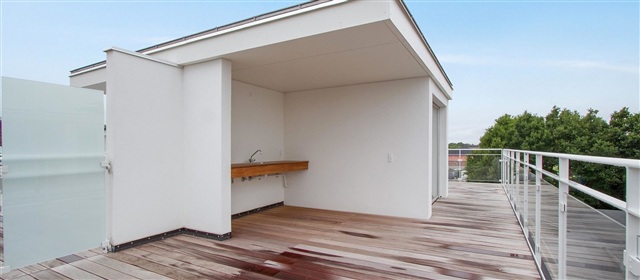 The apartment benefits from an abundance of natural light streaming through large windows and features premium materials throughout. Spanning 109 square meters, the residence is arranged over two floors and offers four rooms. Included is a spacious private rooftop terrace measuring 40 square meters, complete with a covered outdoor kitchen. Every unit includes built-in major appliances and a timeless bathroom outfitted with underfloor heating. It should be noted that the images provided may not depict this exact apartment but are representative of another unit with the same style and quality. Variations can occur in the positioning of windows, balconies or terraces, and radiators, as well as differences in views, depending on the apartment's specific location. Therefore, we strongly recommend attending a viewing to ensure you fully understand the particular features of the dwelling. Please reach out to our leasing team if you are interested.Situated within the Egeparken development, the property stands out due to its distinctive Mediterranean-inspired architecture spanning 18,600 square meters, comprising six residential blocks amid extensive green spaces. Egeparken consists of three apartment types tailored to suit diverse lifestyles: three-room atelier apartments with ceiling heights of five meters, three-room units with private gardens, and four-room maisonettes across two levels featuring direct access to the private rooftop terrace with outdoor kitchen. Completed in 2018, 89% ownership of the estate lies with the charity Humanact. The design integrates no random elements, providing an ideal setting for contemporary family life where energy efficiency aligns with a practical and enduring aesthetic. The surroundings include abundant greenery and a playground area conducive to both relaxation and play. Ample parking spaces are available along the property for residents. Additional amenities include bicycle storage and basement storage rooms monitored by surveillance cameras.