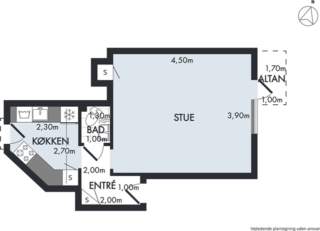 NEDSAT husleje for en møbleret penthouse lejlighed m/altan