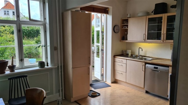 A tenant is sought for a 12-square-meter room offering views of Grøndalsparken. Situated in a peaceful and quaint neighborhood, the house benefits from close proximity to both train and bus services. Traveling to the city center takes approximately 15 minutes, and convenient public transport options connect easily to destinations outside the city.The room itself is bright and comes fully furnished, including a bed, wardrobe space, desk, and chair. Shared access is provided to the kitchen, bathroom with shower, toilet, washing machine, and garden areas. The house is equipped with Wi-Fi. Rent is set at DKK 6,300 per month, with a required security deposit equivalent to two months' rent. Therefore, the initial payment consists of the monthly rent plus the deposit.