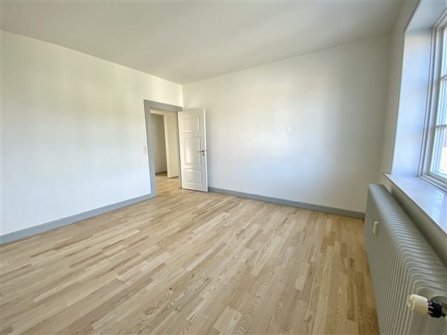 This beautifully renovated two-room apartment measuring 56 m² is available for rent on the first floor, located in a charming neighborhood near Føtex in Nyborg. Upon entering, you are greeted by a spacious hallway that leads into a modern kitchen equipped with all essential appliances, including a dishwasher.The bathroom features elegant tiling and is fitted with a shower. The living room is bright and inviting, complemented by a comfortable bedroom. The apartment also offers lacquered hardwood floors, a door phone system, and access to a shared laundry facility.