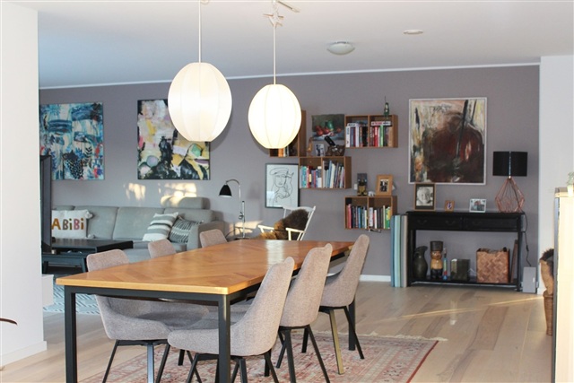 This well-maintained villa located in Lynge offers an ideal living arrangement for families with children. The layout is both modern and practical, featuring a spacious kitchen-dining area that seamlessly connects to a uniquely shaped living room, creating a large communal space suitable for the entire household.On one end of the house, there is a dedicated adult section that includes a master bedroom equipped with a walk-in closet and an en suite bathroom with a shower. The opposite side of the property is designed as a children's area, comprising two generously sized bedrooms.