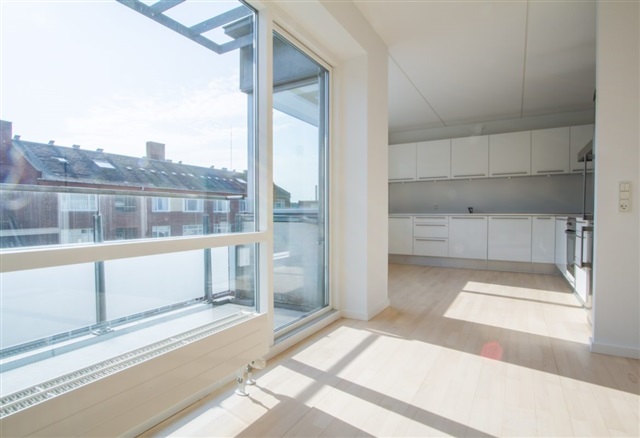 The apartmentUnique apartment right by Brønshøj Torv. The apartment has a fantastic light from the large windows and offers high quality in all material choices. All our rentals are equipped with white goods and a timeless bathroom with underfloor heating. With its 95 sqm, you get 3 rooms, a large kitchen-dining room with access to a lovely large balcony. 2 large bedrooms with views of the green courtyard area and Brønshøj Church. With an elevator in the property, you are taken directly up to the apartment's landing.