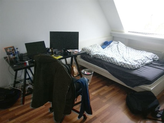 The apartment measures 140 square meters in total. It offers two rooms available for rent: one room is 12 square meters with a monthly rent of 4,600 DKK, and the other room is 9 square meters, priced at 4,100 DKK per month. Each room requires a deposit of 10,000 DKK. Included within the apartment are a washing machine, dryer, and dishwasher for shared use.Located on the fourth floor, the residence provides a remarkable view and access to a communal rooftop terrace. Situated right in the heart of the city, this central location is exceptionally convenient and hard to surpass for those seeking a lively urban environment. The apartment also features a spacious common room designed for shared living.