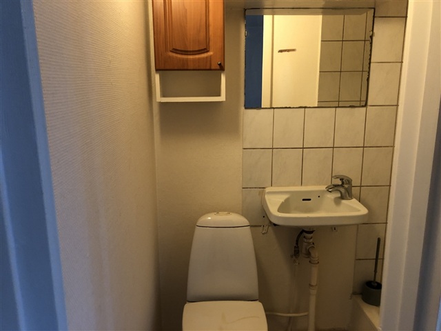 The property consists of a rental building featuring six one-room apartments. The individual unit covers an area of 35 square meters and includes a combined living room and kitchen area, along with a private bathroom. Tenants have access to a shared laundry facility within the building.Regarding utilities and related charges, heating is provided via district heating with a fixed monthly fee of DKK 350. Water costs are set at a fixed rate of DKK 300 per occupant, while electricity requires a fixed contribution of DKK 300. The laundry service has a constant fee of DKK 150. The apartment is equipped with standard appliances including a fridge-freezer, stove, and extractor hood.