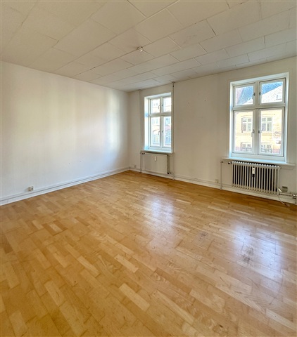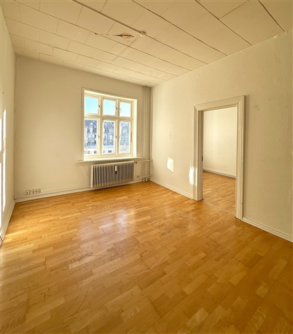 This spacious and charming apartment features two interconnected living rooms and a well-thought-out layout. It offers a versatile living space ideal for couples, small families, or those looking to share accommodation. Upon entering, you are welcomed by a generous hallway that provides access to the other rooms within the home. The kitchen is efficiently designed, offering ample countertop and storage space, and includes a dishwasher. The apartment comprises a comfortable main bedroom along with an additional room that can function as a child's bedroom, a home office, or a walk-in closet. The two living rooms are arranged consecutively, creating an open and inviting atmosphere. There is plenty of room to set up both dining and lounge areas, while the large windows allow abundant natural light to fill the space. The bathroom is practical, featuring a separate shower enclosure.Located on what is arguably the most frequented street in Aalborg, this hidden gem of a three-room apartment benefits from a prime position. Just outside your door, you will find countless shopping options, grocery stores, and public transport connections. Within a few minutes' walk, you can access green recreational areas and the scenic harborfront.