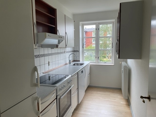 This well-maintained property, located near Føtex in Nyborg, offers a charming 2-room apartment for rent on the first floor, covering 53 square meters. Inside, you will find a modern kitchen equipped with appliances, including a dishwasher. The bathroom features attractive tiling and a shower area. The unit also includes a spacious living room and a comfortable bedroom. Additional amenities consist of lacquered floors, an intercom system, and access to a shared laundry facility. The monthly rent is DKK 4,578, with additional costs for heating at DKK 500 and water at DKK 400. A deposit of DKK 13,734 is required.
