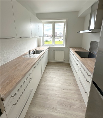 The apartment features a contemporary HTH kitchen equipped with an integrated dishwasher and ample storage options. It includes a bright and cozy living room with a bay window, along with a large, spacious bedroom fitted with built-in wardrobes. The bathroom contains a separate shower area as well as a window for ventilation, and there is a generously sized entrance hall. All the windows in the apartment are soundproofed, effectively blocking out noise from the busy environment outside. The entire unit has been thoroughly renovated, featuring HTH cabinetry, new flooring, and freshly painted walls. Overall, it represents a well-maintained residence of high quality.Situated in the heart of Nørresundby, the apartment benefits from numerous nearby shopping facilities and convenient access to various amenities. In addition to enjoying views of the fjord, the property is located only a short distance from the waterfront.