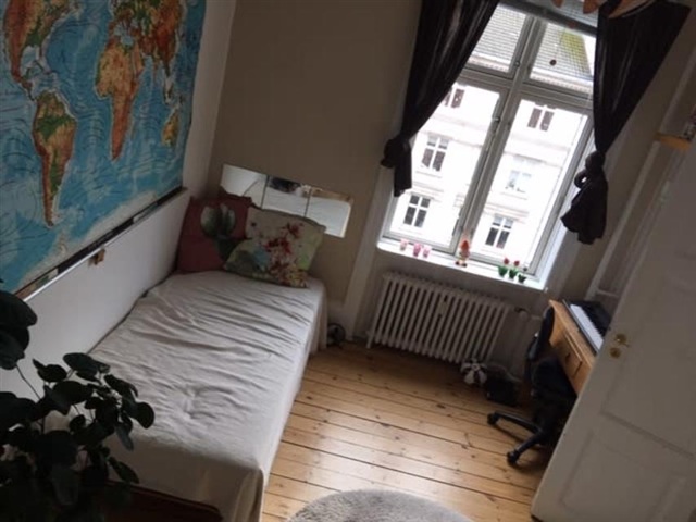 A partly furnished room, ready for immediate occupancy, is available for anyone seeking accommodation. It could be ideal if you want to experience living in central Copenhagen to determine if the location suits you. Single parents are also welcome, as there is certainly enough space for a child.The apartment belongs to a small family consisting of a mother and her two children, aged 18 and 8, and it features one bathroom. In addition to your private room, you are free to use the living room, dining area, kitchen, and bathroom.