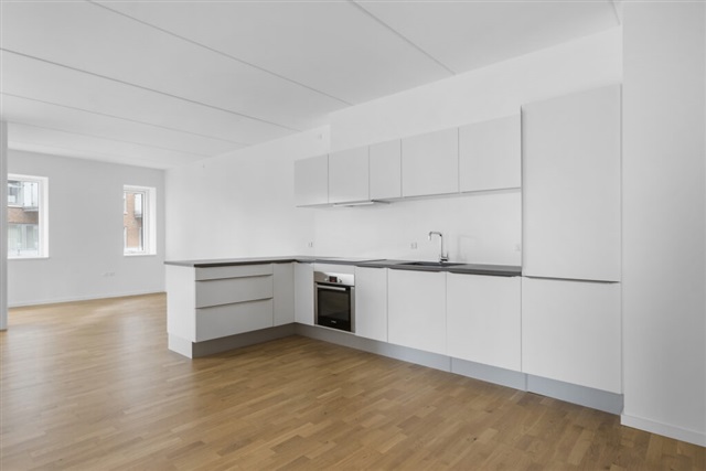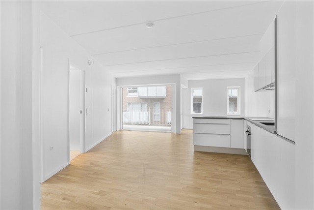 This inviting three-room apartment features an intriguing layout within a contemporary and sleek building constructed in 2018, situated in the desirable Godsbaneareal area.The residence includes a spacious, bright kitchen-living area where the kitchen seamlessly flows into the living room, creating an ideal setting for everyday living as well as entertaining guests. The bathroom is generously sized and designed with elegance, showcasing travertine-look tiles, ample cupboard space, and a window that brings in pleasant natural light.