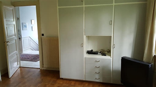 Large bright room for rent immediately in a villa on the 1st floor. It contains a large wall-mounted 3-wing wardrobe, a bed, a bookcase, possibly a desk, a TV and a refrigerator. Can also be rented without furniture.There is free access to the kitchen and bathroom, internet and washing machine. Access to the front garden.