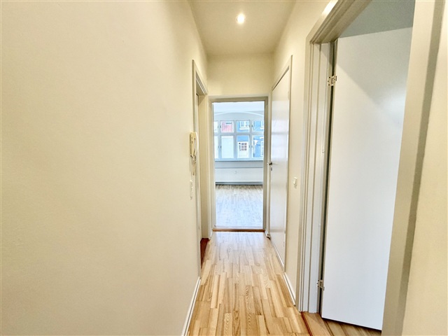 Situated in the heart of Vesterbro, just a short walk from Føtex, this beautifully renovated two-room apartment of 62 m² is available for rent on the ground floor. The unit features a stylish, modern kitchen equipped with high-gloss cabinetry and stainless steel appliances. The bathroom boasts elegant tiling and includes a shower. Bright and spacious, the living room is complemented by a generously sized bedroom. Additional details include sanded wooden floors, an intercom system, and access to a shared laundry facility. The monthly rent amounts to DKK 6,547, with heating costs of DKK 600 and water expenses of DKK 400. A deposit of DKK 19,641 is required.