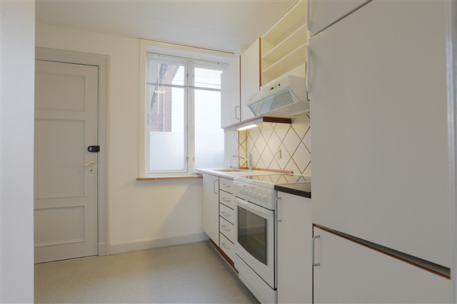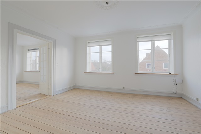 E. Bank Lauridsen is renting out this lovely 3-bedroom apartment, just a 5-minute walk from the main square in Esbjerg. The apartment is located on the 1st floor and is furnished with an entrance hall, bathroom, kitchen, bedroom and 2 large living rooms en-suite. All living rooms have planed wooden floors and the apartment's bright living rooms have beautiful stucco ceilings. From the living rooms there is a view towards Torvegade. The apartment's bedroom has a view of the property's courtyard, where there are good parking options and a cozy courtyard for shared use by the property's residents. The kitchen has light-colored cabinet doors, and from here there is also a view towards the courtyard. The bathroom is equipped with a shower, sink, toilet and white walls. The apartment also includes white goods, an intercom and access to shared laundry facilities and bicycle parking in the basement. Possibility of parking in the courtyard. PETS ARE NOT ALLOWED IN THE PROPERTY!If you want to read the description in its original language that is also possible. Read original description