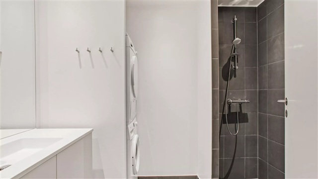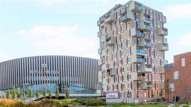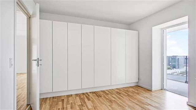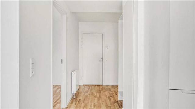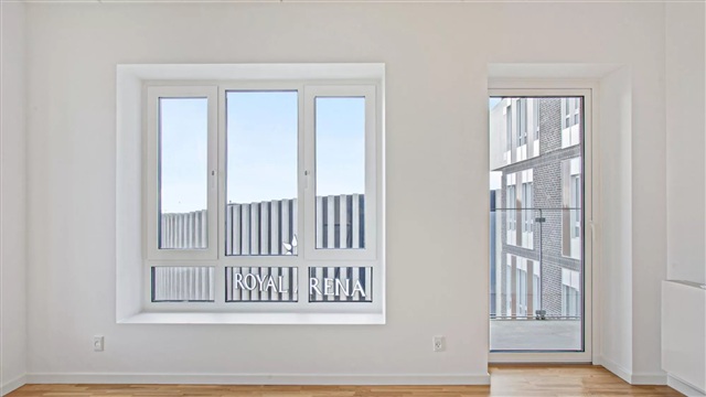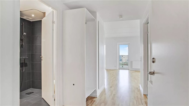 The building known as Fælledudsigten was constructed in 2017 and is situated in the Arenakvarteret district of Ørestad. Its design is distinguished by covered, screened balconies that offer sights toward all compass points. Constructed primarily of brick, the façade features a dynamic color scheme and varied structural elements, while the unique sheltered balconies contribute to a varied exterior appearance and protection against weather, enabling an extended balcony season. Built with durable materials requiring minimal upkeep, every dwelling here meets the A2010 energy efficiency standard. Additionally, each apartment includes access to a basement storage room. Should residents wish to celebrate significant life events, a communal function room located in the neighboring building, Fælledudsigten I, is available for rental.