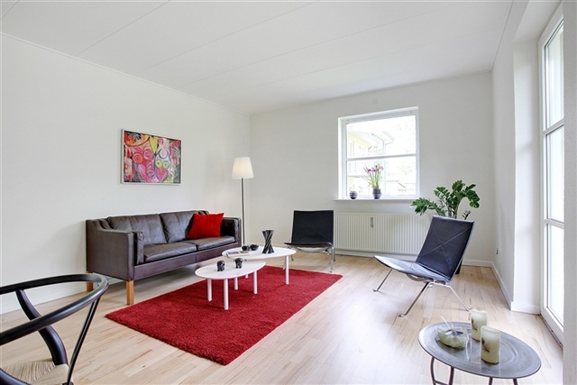 Bright, one-level row houses on Overbygård, built in 1997, are located on a dead-end street near the countryside and close to Østergårdsvej, where two-story buildings enjoy a unique park-like shared outdoor space. All these homes are designed without doorsteps, catering well to those with mobility impairments; however, units on the first floor of Østergårdsvej have stairs, with elevator service only to numbers 2B-E. The department offers a rental common room on Rosavej and permits keeping one dog and one cat.