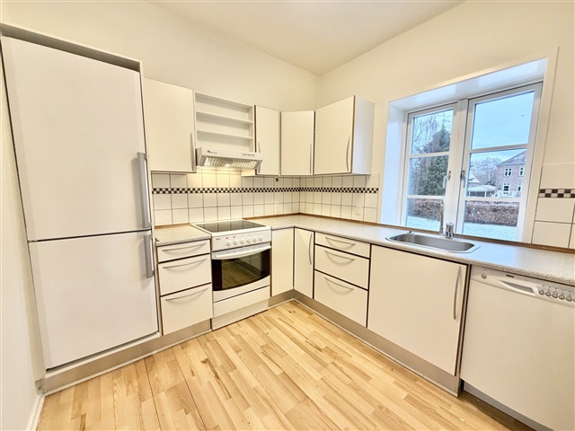 Situated in a well-maintained building near Føtex and the pedestrian street in Nyborg, this charming 2-room apartment of 48 m² is available for rent on the ground floor. The residence features a modern kitchen equipped with all major appliances, including a dishwasher.The bathroom is elegantly tiled and includes a shower. The living room is bright and inviting, complemented by a spacious bedroom. Additional benefits include lacquered floors, a cellar storage room, and access to a communal laundry facility.