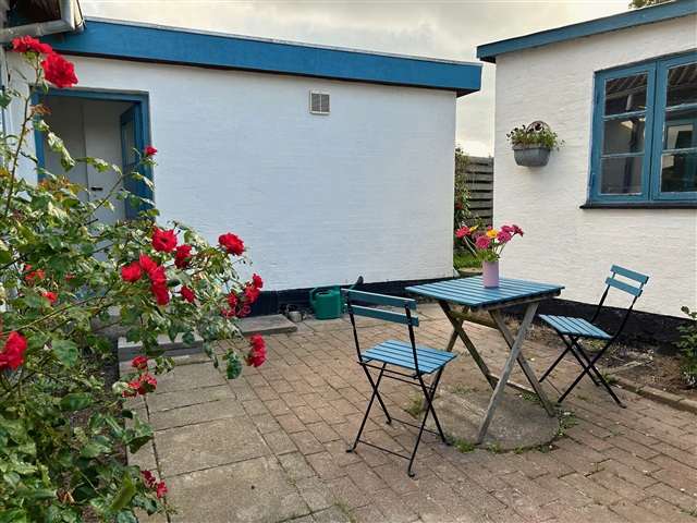 If you go out the back door of the house, there is a small private courtyard, a small fenced garden and an outhouse where you can store your garden tools and the like.