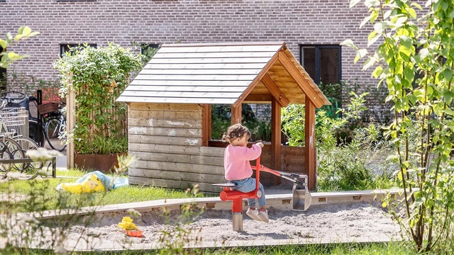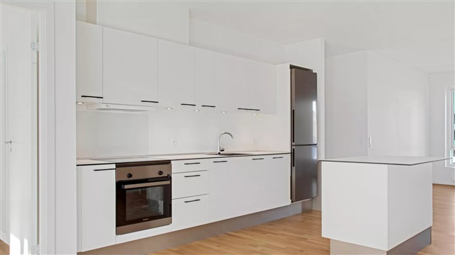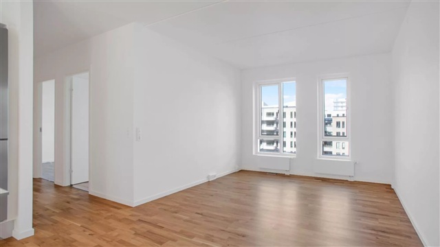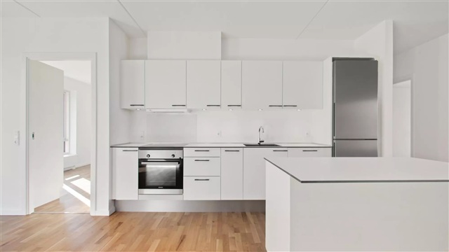 The building, Bastionen, stands out with a distinct architectural character designed by the award-winning Danielsen Architecture. Its signature Winter Gardens adorn the facade, guiding visitors into a verdant courtyard. The planting design draws inspiration from the nearby Kalvebod Fælled, incorporating its native vegetation into both the courtyard and private balconies, which helps shield against wind while fostering a green sanctuary. The southwest corner of Bastionen is deliberately constructed lower than the rest of the structure to maximize sunlight penetration into the courtyard and optimize views toward the surrounding natural areas known as Skovrummet and Fælleden. This lowered section also ensures that apartments within receive abundant daylight. The lush and diverse landscaping within the courtyard provides relaxing nooks as well as ideal natural play areas featuring tall climbing trees, small hills, and meadow grasses suitable for hide-and-seek. Additional amenities in the courtyard include a greenhouse, a basketball court, and a covered bicycle parking area. Residents have access to an elevator, an intercom system with a camera, and the option to rent a parking space in the basement.