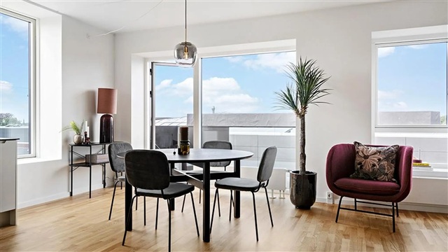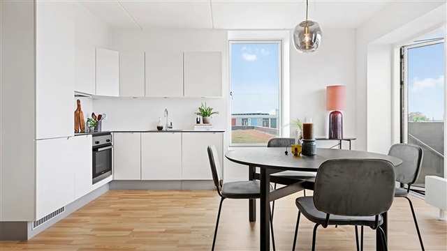 Situated in the historic station district at the heart of Hillerød, Carlsbakken places residents close to many amenities. Cars must be parked approximately 100 meters from the building, as the area features car-free streets designed to establish pleasant and safe public spaces with green squares. This location offers excellent proximity to everything, including the train station, enabling travel to Copenhagen in under 40 minutes. Several reputable daycares, elementary schools, high schools, and multiple higher education institutions are within walking distance. A ten-minute bike ride leads either toward SlotsArkaderne, Frederiksborg Castle, and the Castle Lake, or in the opposite direction, into the large Dyrehave Forest. This natural area invites long walks through wild surroundings, offers rich wildlife to observe, and provides opportunities to gather ingredients for homemade elderberry juice or blackberry jam.