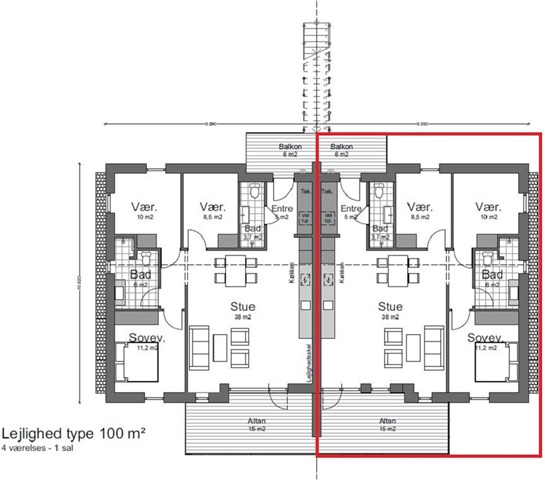 This dwelling is a mirror image of an identical unit.