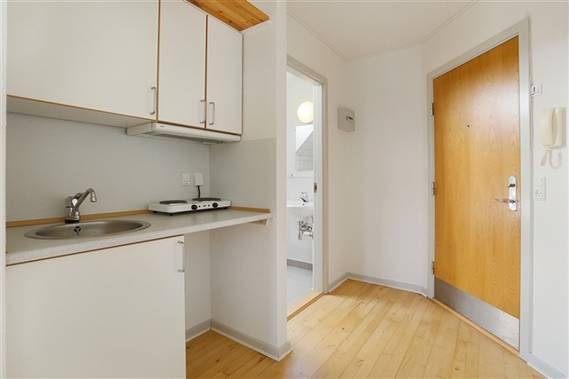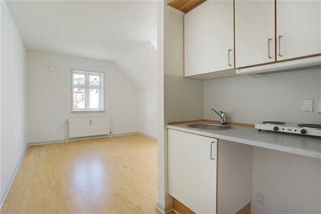 Situated in the heart of the city, Østergade offers residences steeped in historical charm. These conserved buildings, constructed in 1995, provide a tranquil atmosphere despite the lively central location. Residents have access to a shared courtyard, which serves as a peaceful retreat featuring a seating area with benches and a grill, ideal for enjoying nature and outdoor gatherings.The apartments themselves present a minimalist design, highlighted by parquet flooring throughout. The kitchen includes a countertop with separate cooktops, while the spacious bathroom is finished in light tones with tiled floors and shower area. A small window in the bathroom allows for effective ventilation. Tenants are welcome to use the community room within the development for celebrations and social events. Additionally, a locked bicycle cellar is available to all residents. Utility expenses are handled with water and heating billed monthly in advance by the landlord, whereas electricity costs are paid directly to the utility provider.