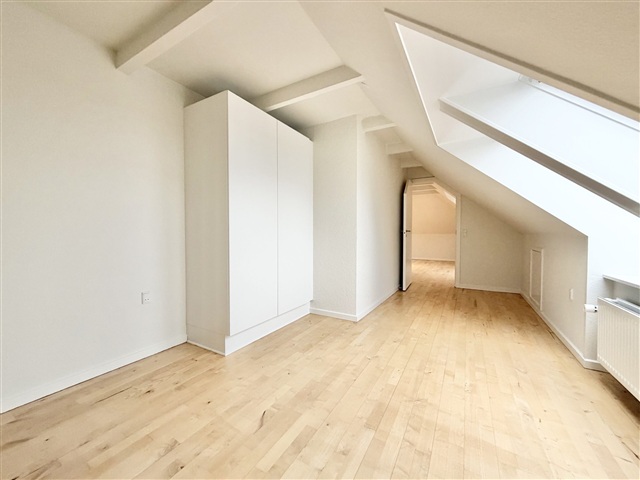 Situated in a beautifully renovated property on Roesskovsvej, close to attractions such as Tusindårsskoven, the outdoor swimming pool, and the light rail, this newly refurbished two-room apartment spans 64 m² and is positioned on the third floor. Upon entering, you are greeted by a spacious hallway featuring built-in wardrobes offering ample storage for outerwear, shoes, and cleaning equipment. The bathroom has been modernized and includes a shower as well as a combined washer-dryer unit for convenience.The bright living room opens directly into a stylish kitchen equipped with all necessary appliances, including a dishwasher. The generously sized bedroom also provides built-in closets. Throughout the apartment, lacquered parquet flooring adds a refined touch, and additional storage is available in a basement cellar.