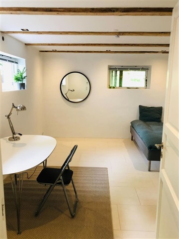 The room is primarily rented out unfurnished, with the possibility of moving in from April 1st. However, furniture such as a bed and desk may be lent if needed. The room also benefits from its own private entrance. The rent is set at 5,000 DKK per month, covering all expenses like internet access and subscription services including Netflix and HBO. A deposit equivalent to two months' rent is required. The homeowner prefers to lease the room for an extended period, subject to agreement.