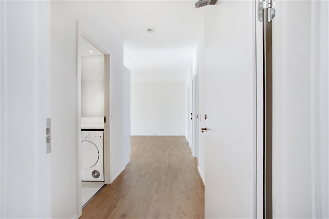 This apartment, designed in a Scandinavian aesthetic, presents a bright, modern, and inviting environment. Expansive windows allow abundant natural light to flood the interiors, enhancing the warmth of the space and accentuating the light oak flooring. At the core of the residence lies an open living area featuring a kitchen and dining space. The subtle white kitchen, crafted by Invita, is equipped with Siemens appliances. The bathroom is tiled on both the floor and within the shower enclosure, and includes a Siemens washing machine and dryer. The master bedroom offers built-in storage solutions. Tenants wishing to keep pets may apply for permission in any of our rental units. Please note that if measurements of the apartment are required during viewings, you must bring your own measuring tools, as the floor plan does not provide dimensions.