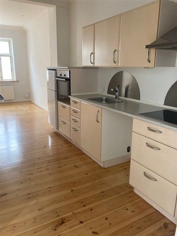 This attractive ground-floor apartment with three rooms is situated in the heart of Slagelse, housed within a well-maintained building that offers convenient shared amenities such as bicycle parking and communal outdoor seating areas.The layout includes an entrance hall suitable for furnishing, a beautifully tiled bathroom, a neat kitchen that seamlessly connects to the living room, and two spacious bedrooms. The rental unit benefits from its own private entrance as well as a personal terrace.